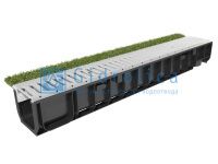 Комплект Gidrolica Sport: лоток водоотводный ЛВ-10.14,5.12 пластиковый с решеткой РВ-10.14,2.100 стальной оцинкованной, кл.А15 в Санкт-Петербурге